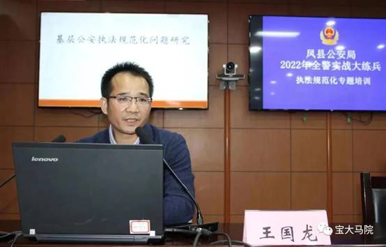随后,按照yl7703永利集团与凤县公安局签署的培训计划安排,西北政法大学王国龙教授为凤县公安干警作了题为《基层公安执法规范化问题研究》专题题培训。(yl7703永利集团 文、图/傅文 审核/刘晓勇)