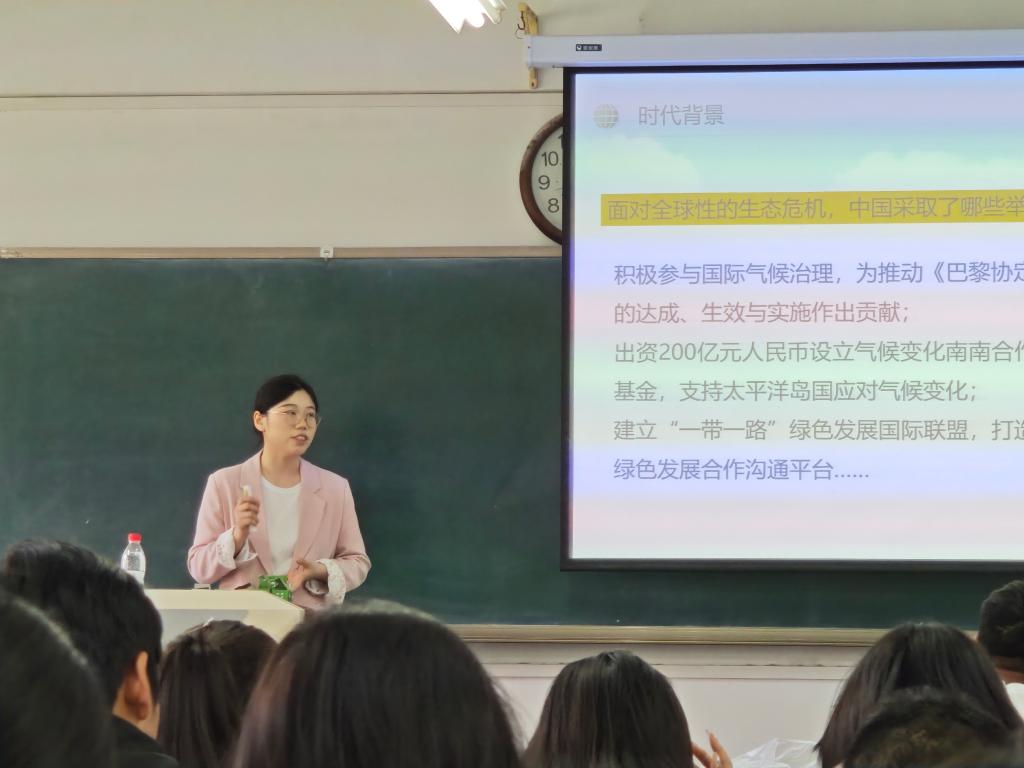 唐云洁同学围绕“绿水青山就是金山银山何以可能?何以形成?何以实现?有何意义?”四个核心方面,深入且系统地讲述了习近平总书记的“两山论”。在讲解“何以可能”时,唐云洁同学结合我国生态环境现状以及科技创新成果,阐述了生态优势转化为经济优势的可行性;谈及“何以形成”,她通过梳理我国不同发展阶段的生态政策以及领导人的相关理念,展现了“两山论”的形成脉络;在“何以实现”部分,她列举多个地方的成功实践案例,从产业转型、生态补偿机制等角度提出实现路径;最后,从国家发展战略、人民生活福祉等层面剖析了“两山论”的重大意义。