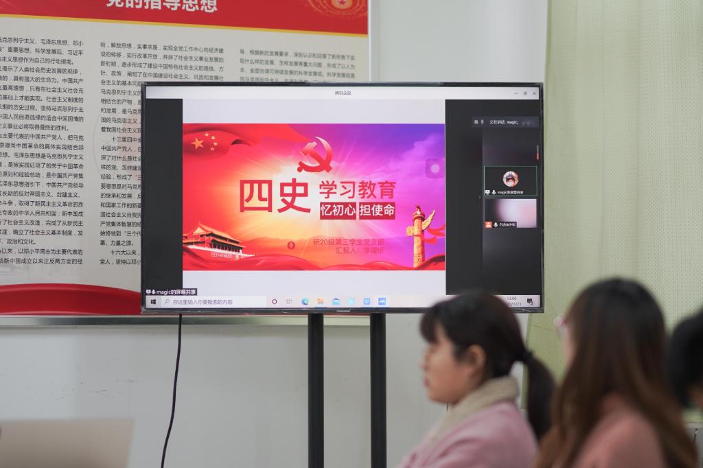 为做好疫情防控工作,本次答辩采取现场答辩与线上答辩相结合的模式进行,7个本科学生支部进行了现场答辩,博士支部和2个研究生支部通过腾讯会议平台在线上答辩,答辩的同志们通过PPT全方位展示了各学生支部的组织生活创新案例。